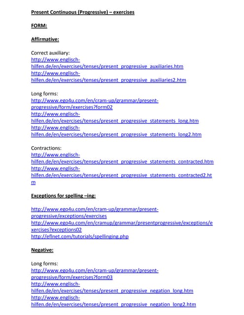 Exercises For Present Continuous Progressive