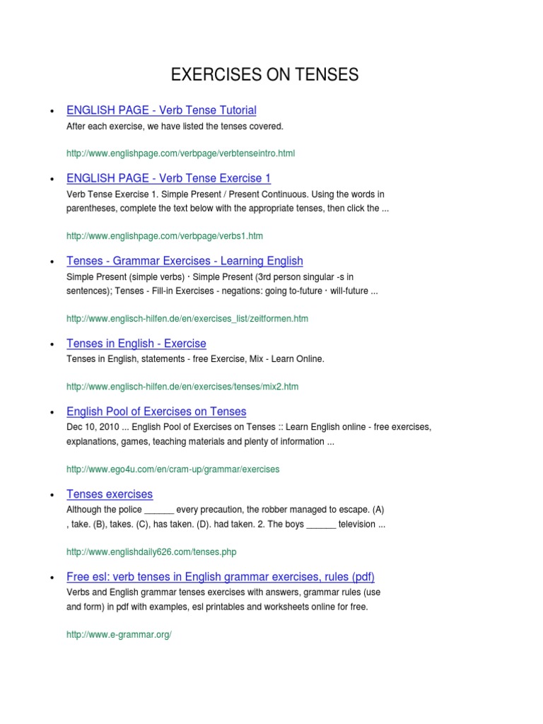 Exercises On Tenses English Language Grammatical Tense